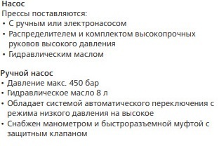 Комплектация HYDRAULIK Переносной пресс типа HYDRAULIK состоит из нескольких компонентов, в числе которых: