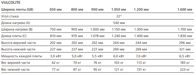 возможность использования двух и более вулканизаторов (для увеличения длины стыковки).